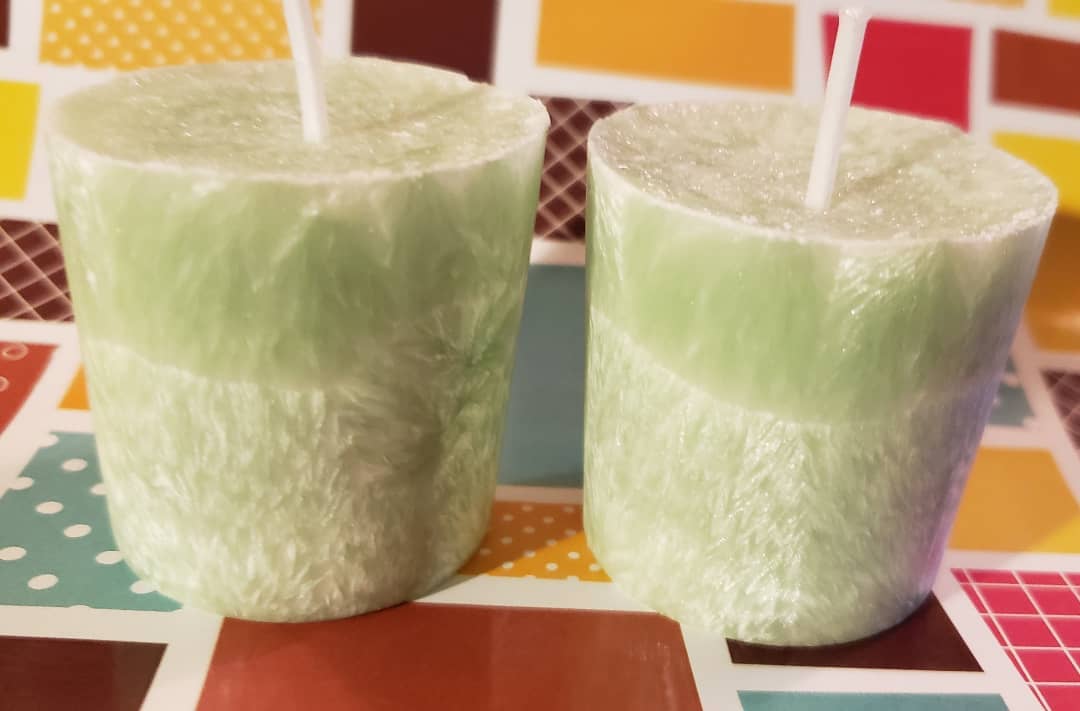 Handcrafted by Mystic Paths using palm wax and essential oils, (fragrance oils by request via necessity i.e. some food scents). Customize your candle by specifying your color(s), scent(s), and leave any notes you wish. Votives measure approximately 1.5"x 2".
